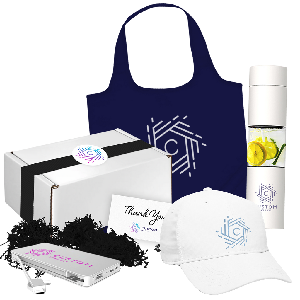 Our Keepin' It Clutch kit includes a moisture wicking cap, a foldaway tote bag, the Trio Power Bank and the Asobu Flavour U See water bottle.